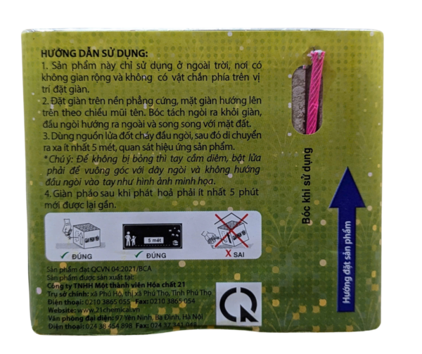 - Bước 3: Kích hoạt sản phẩm đốt dây ngòi cháy chậm. Sau đó, lùi ra xa ít nhất 10 mét và chờ đợi sản phẩm hoạt động.